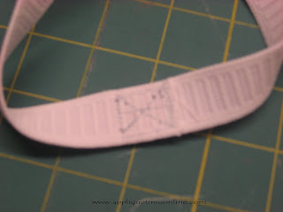 Using a safety pin (because that's how my mom taught me) I then insert the elastic through the casing. I typically start with my waist measurement plus 1" for the length. Once the elastic is through I pin the elastic ends together (maybe this is why I start with a safety pin) and try the skirt on. Of course the elastic always needs to be adjusted but that is simple. After adjusting the fit I sew the elastic together, distribute the fullness, and stitch the opening close. I also make a habit of stitching in the ditch on the side seams to try to keep the elastic from shifting or twisting.
